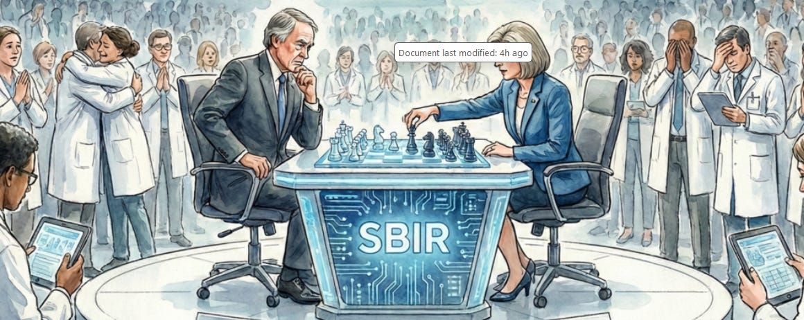 The negotiations over SBIR are still serious, still incomplete, but shaping where the two sides are drafting in the same direction.